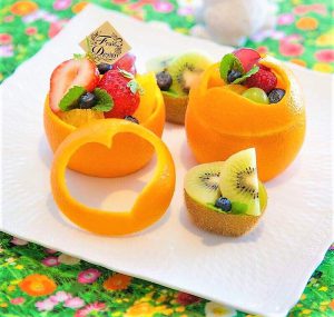 It seemed to be difficult for the first sight but we will provide sample final decollation of the fruit and it won’t take so much effort for the one with not many experience with knife. If you learn fruit cutting, it would help you making lunch box looks neat, or decollate the table for home parties.